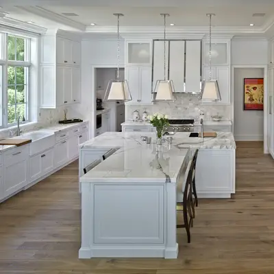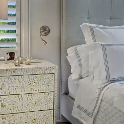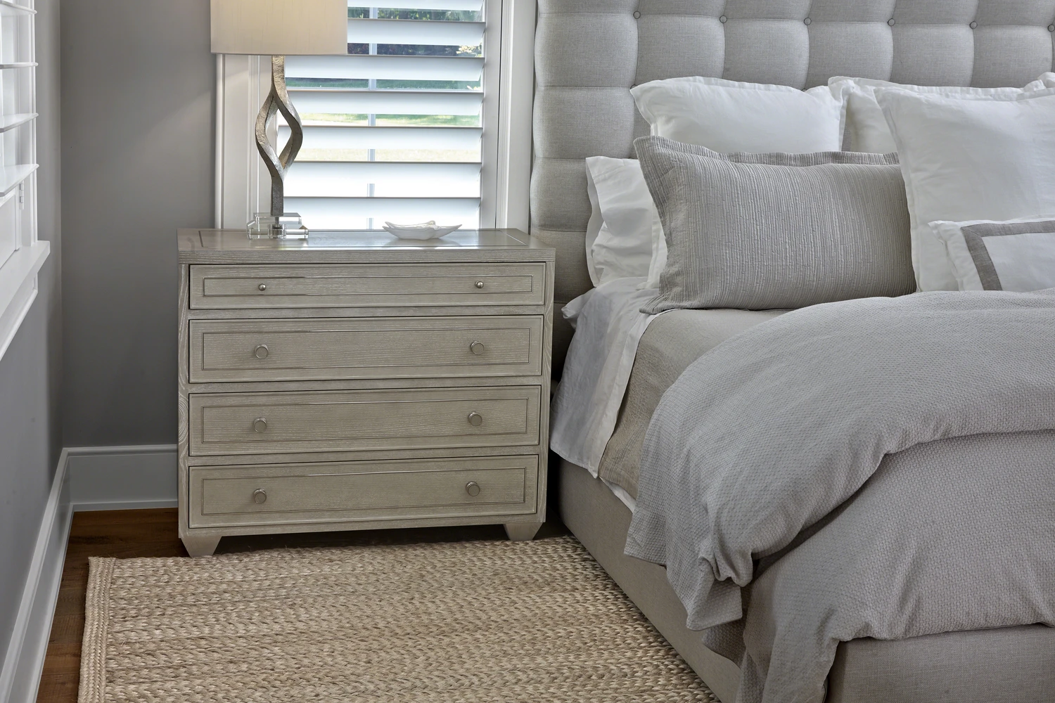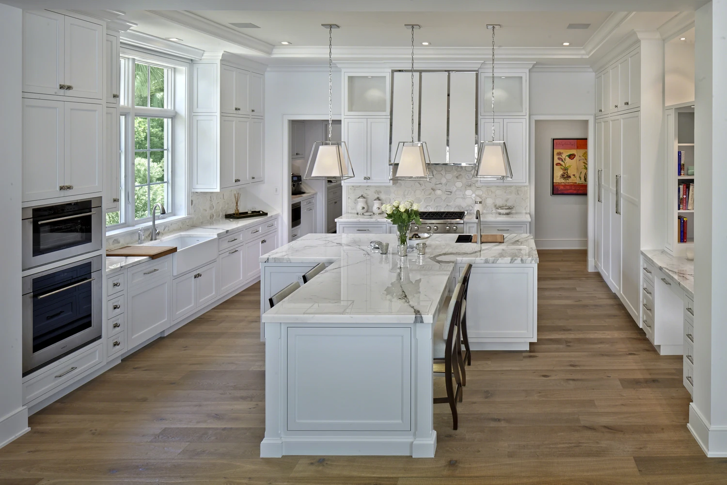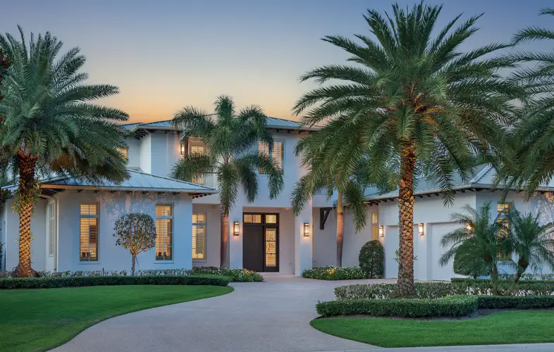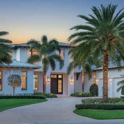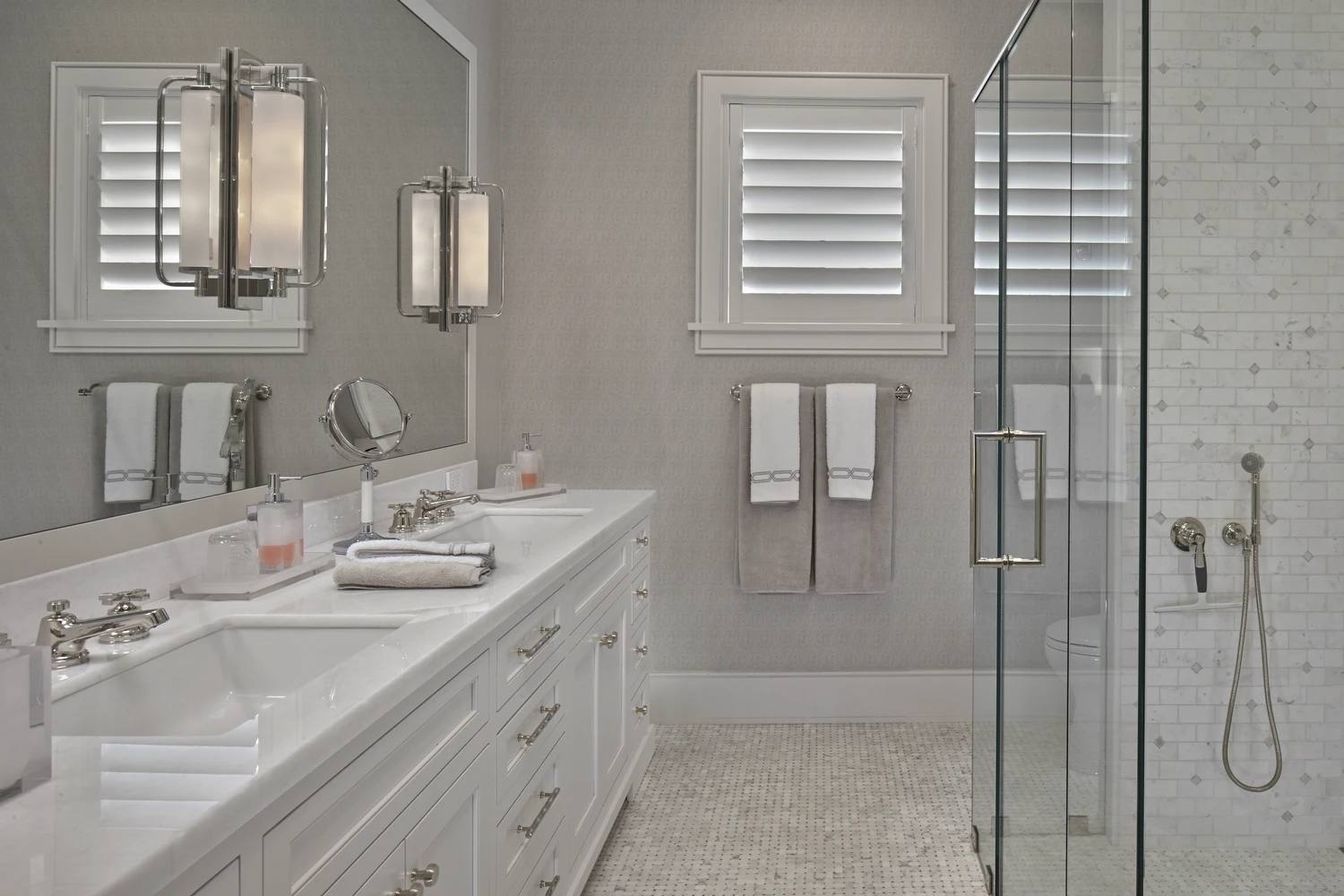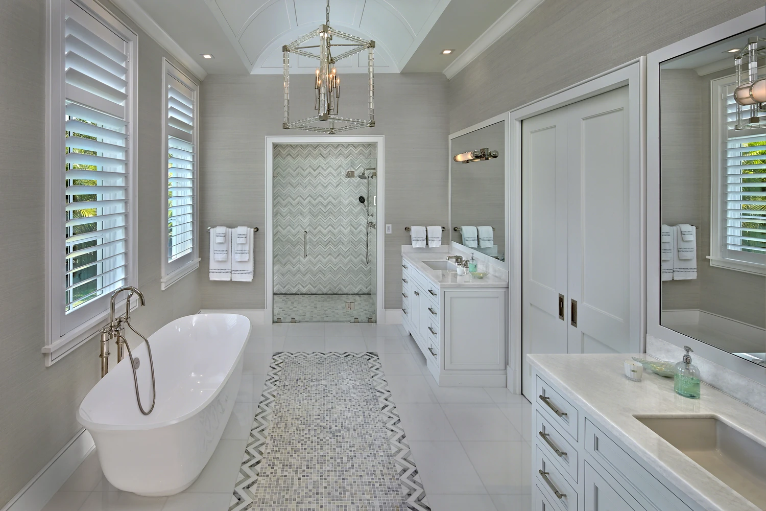 Our second home for this client features a great floor plan with a family room opening, perfectly connecting to the real rear porch. The new threshold pocketing door and wood floor match the loggia porcelain floor, creating a seamless flow. The exterior pool area features a vanishing edge pool. We did the interior design and furnishing in-house as well.