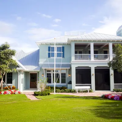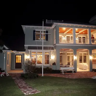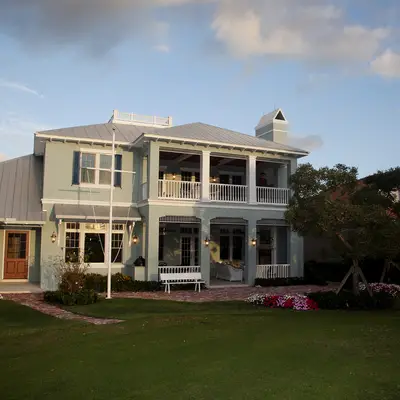 We expertly crafted a beautiful Key West Vernacular design by Mitch Miller of Village Architects. We sourced, created, and installed the exposed woodwork of this design, including mahogany exterior doors, brackets and beams, rafter tails and outlookers, and handrails—all topped by a widow’s walk. The home was sealed with a Galvalume 5V crimp roof, authentic to the islands. One can almost feel the warm tropical breezes while looking through the photos.