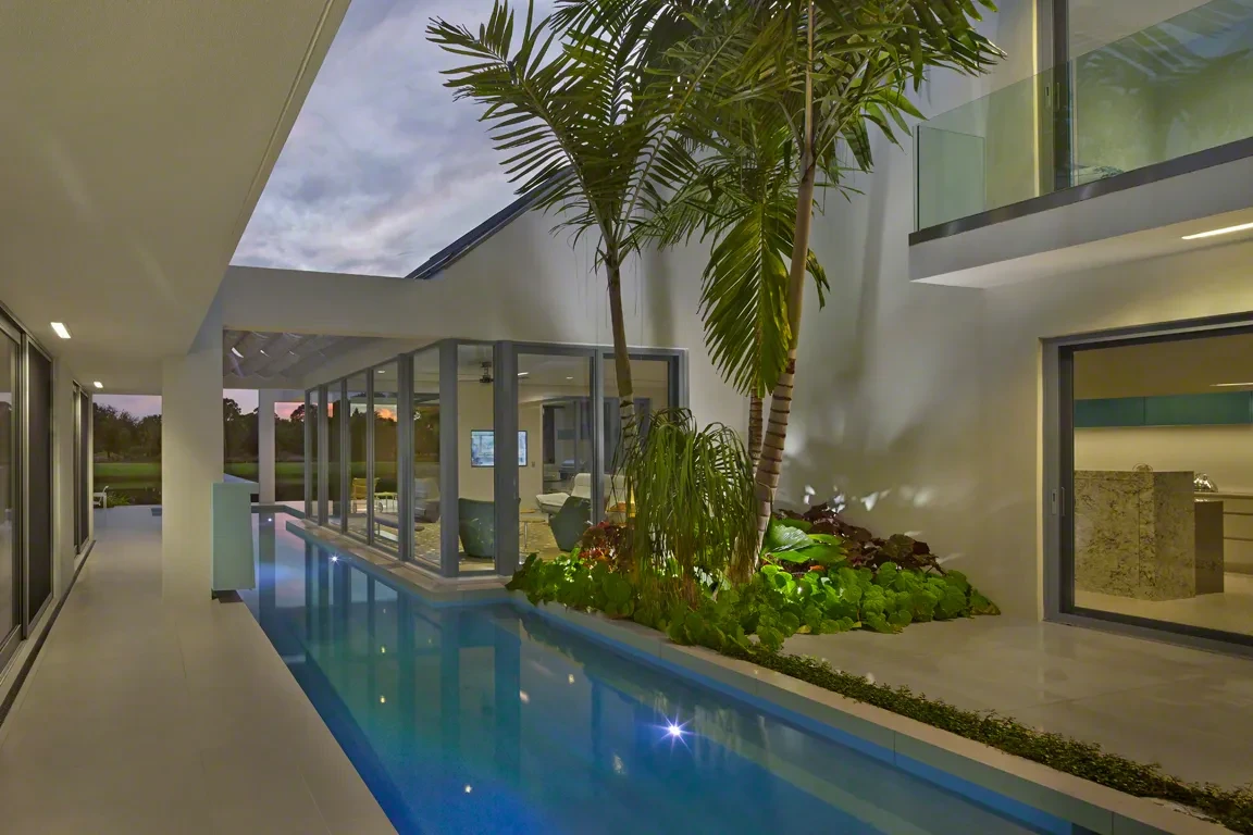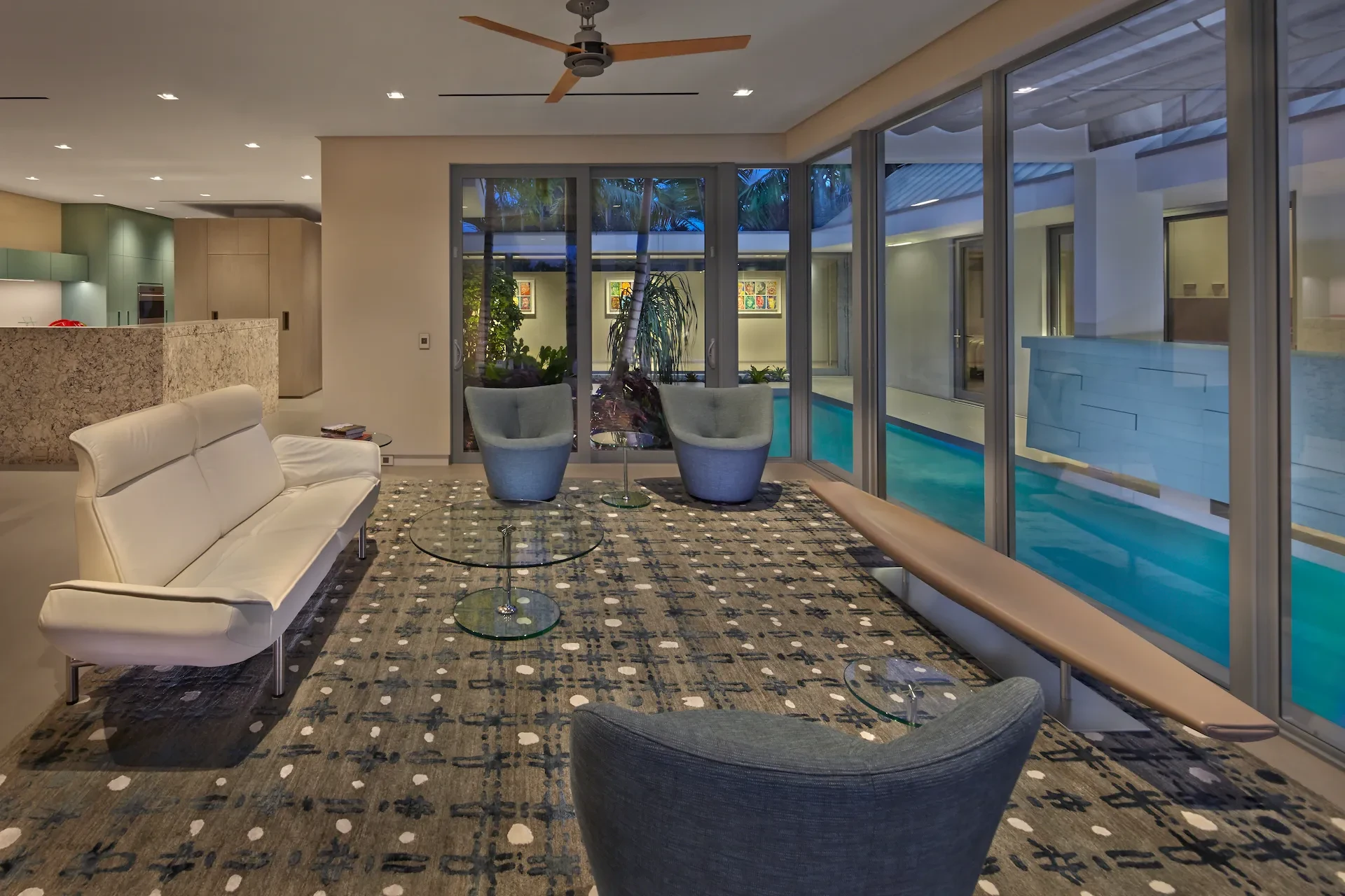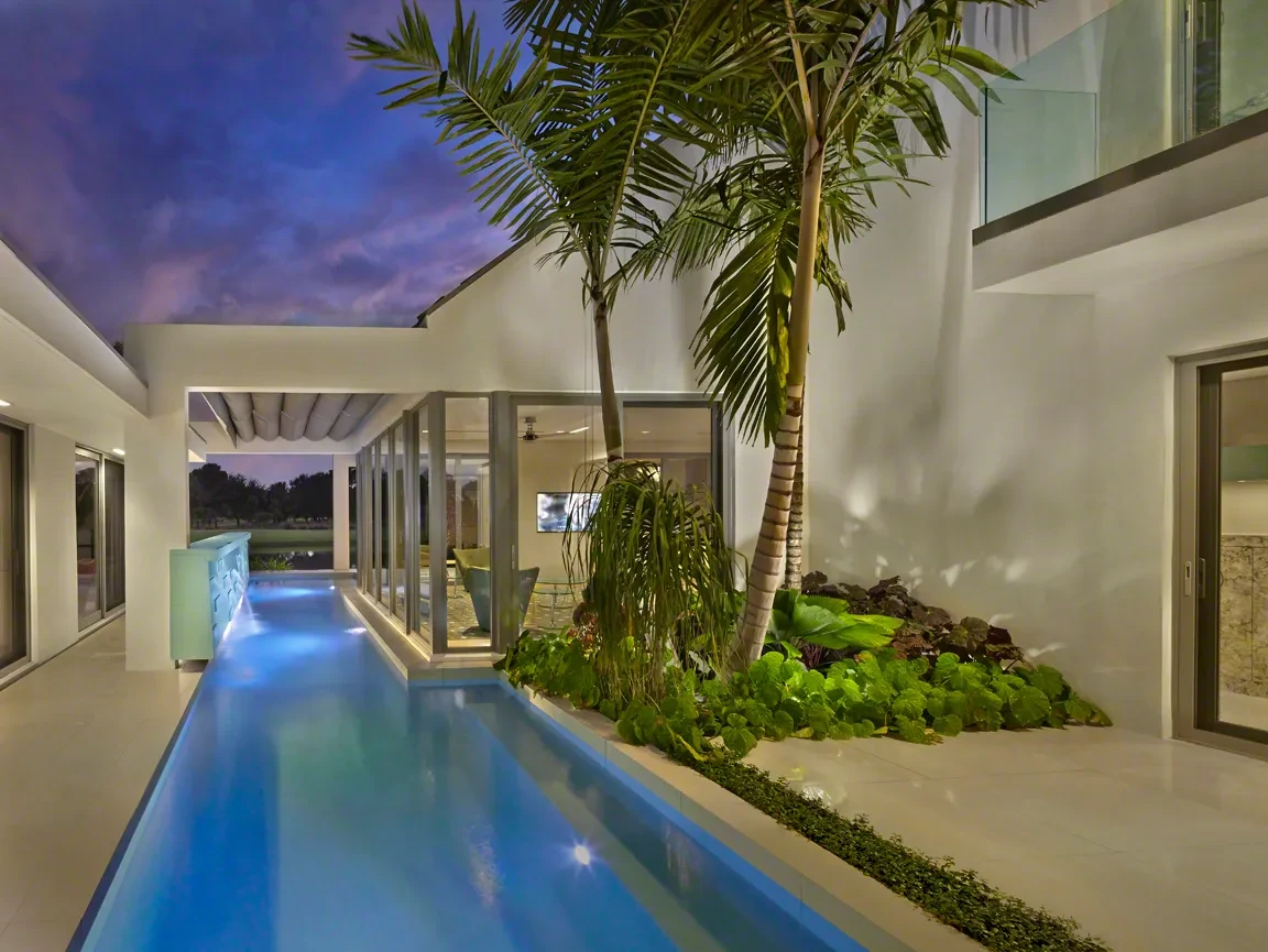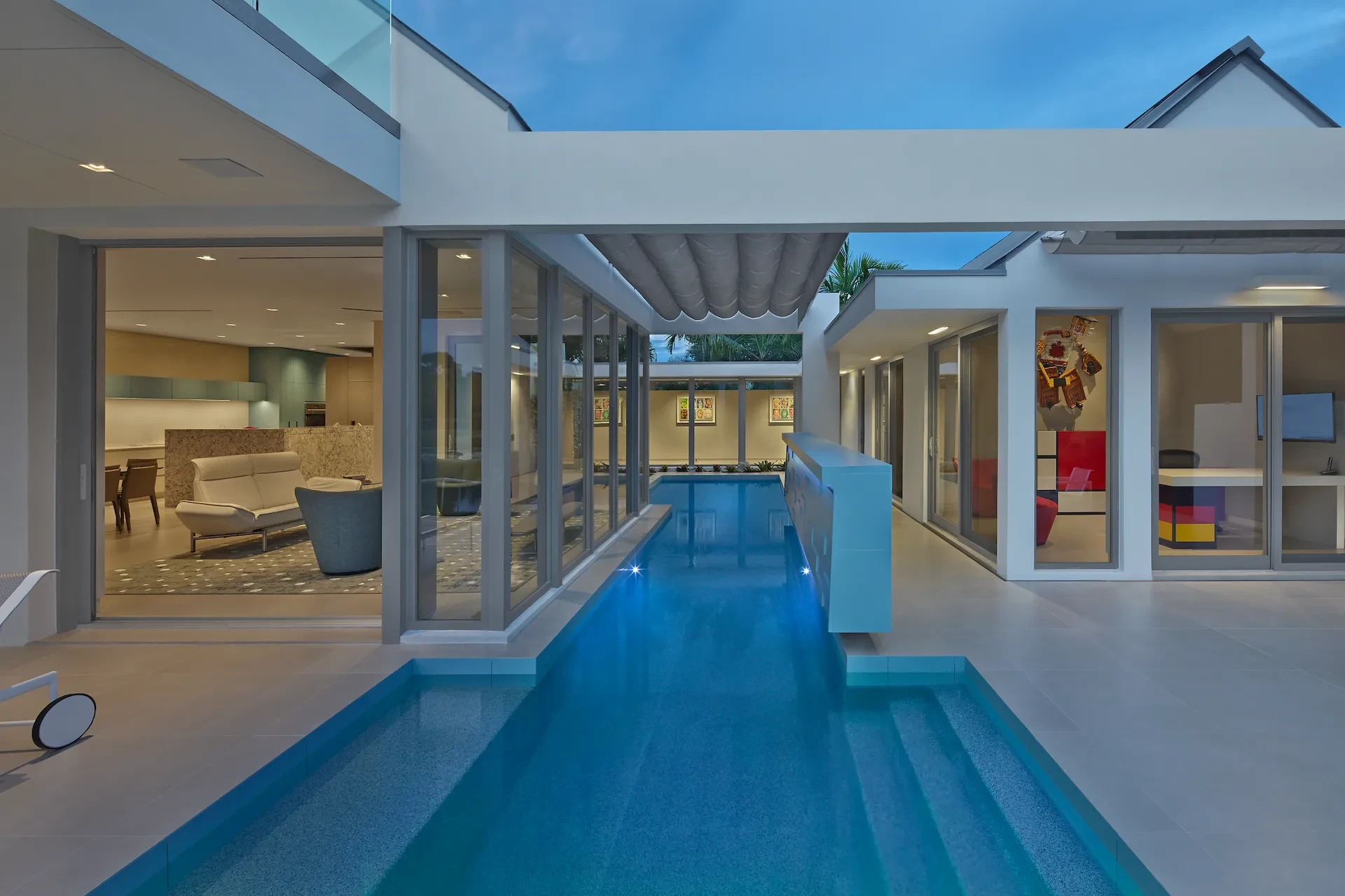 With the help of two great design professionals, interior designer H. Allen Holmes and architect Mitchell O’Neil, this home was magnificently constructed with minimalistic details. All work had to be thoughtfully planned to allow minimalism. We installed the pool, which bisects the home before starting the foundation of the home. Our clients were extremely agreeable to allow the design and construction team to produce extremely “cutting edge” work. The result was perfection.