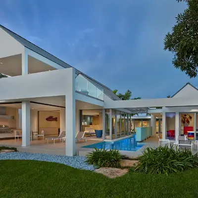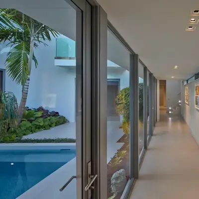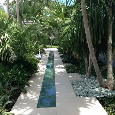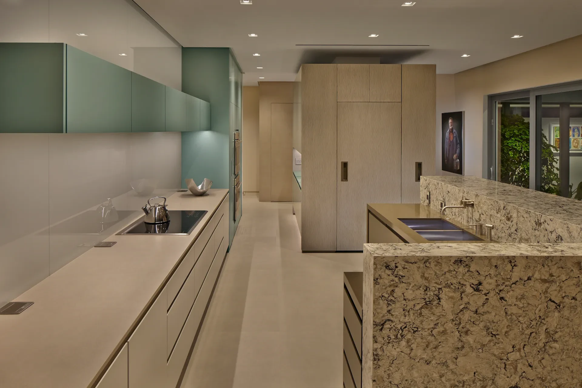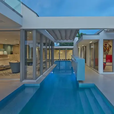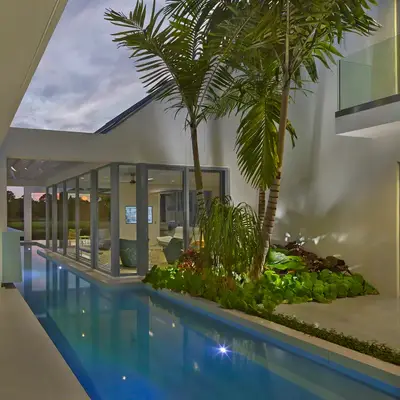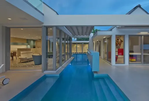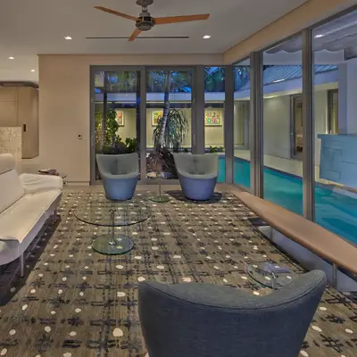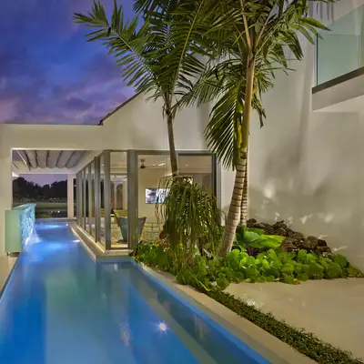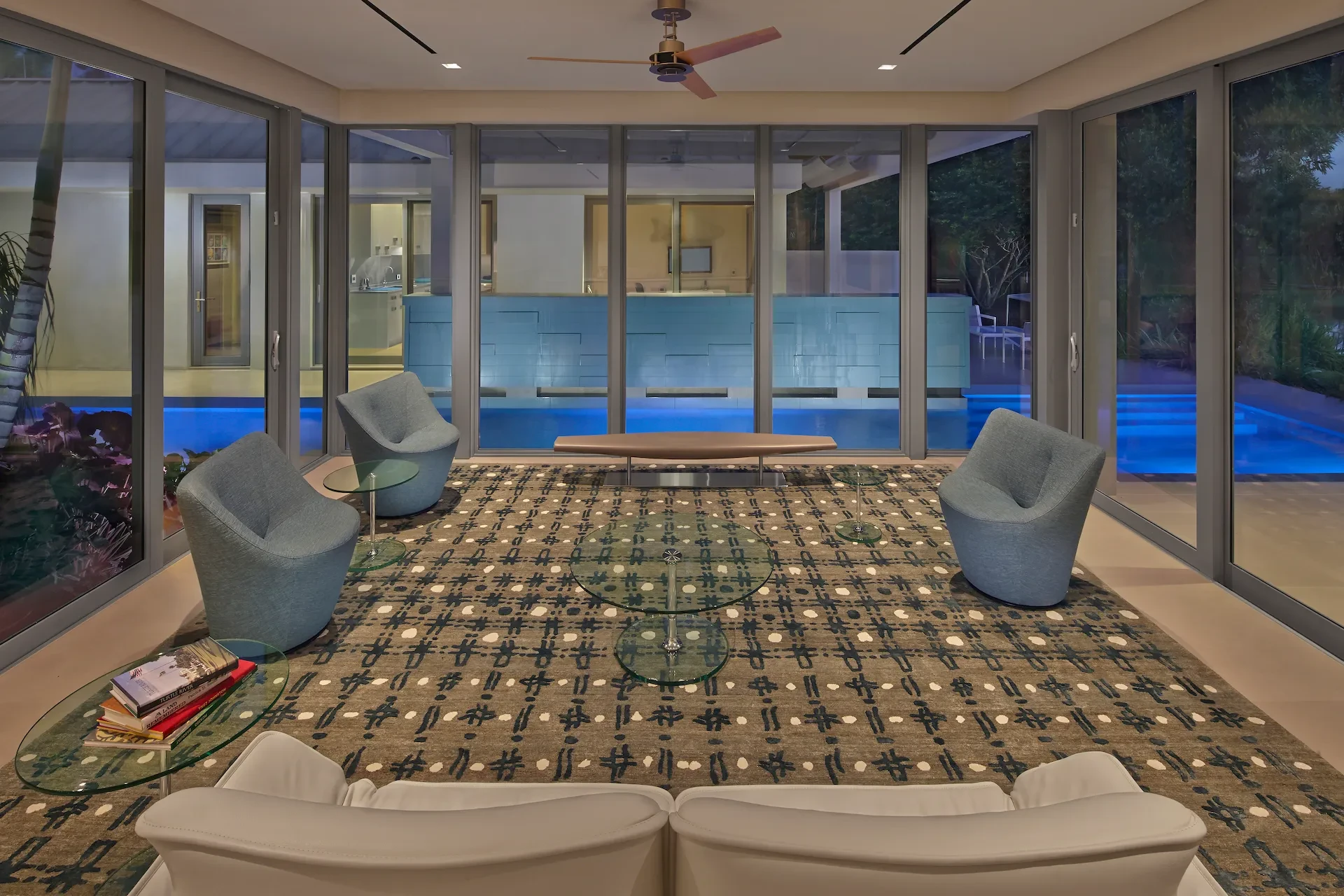 With the help of two great design professionals, interior designer H. Allen Holmes and architect Mitchell O’Neil, this home was magnificently constructed with minimalistic details. All work had to be thoughtfully planned to allow minimalism. We installed the pool, which bisects the home before starting the foundation of the home. Our clients were extremely agreeable to allow the design and construction team to produce extremely “cutting edge” work. The result was perfection.