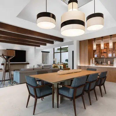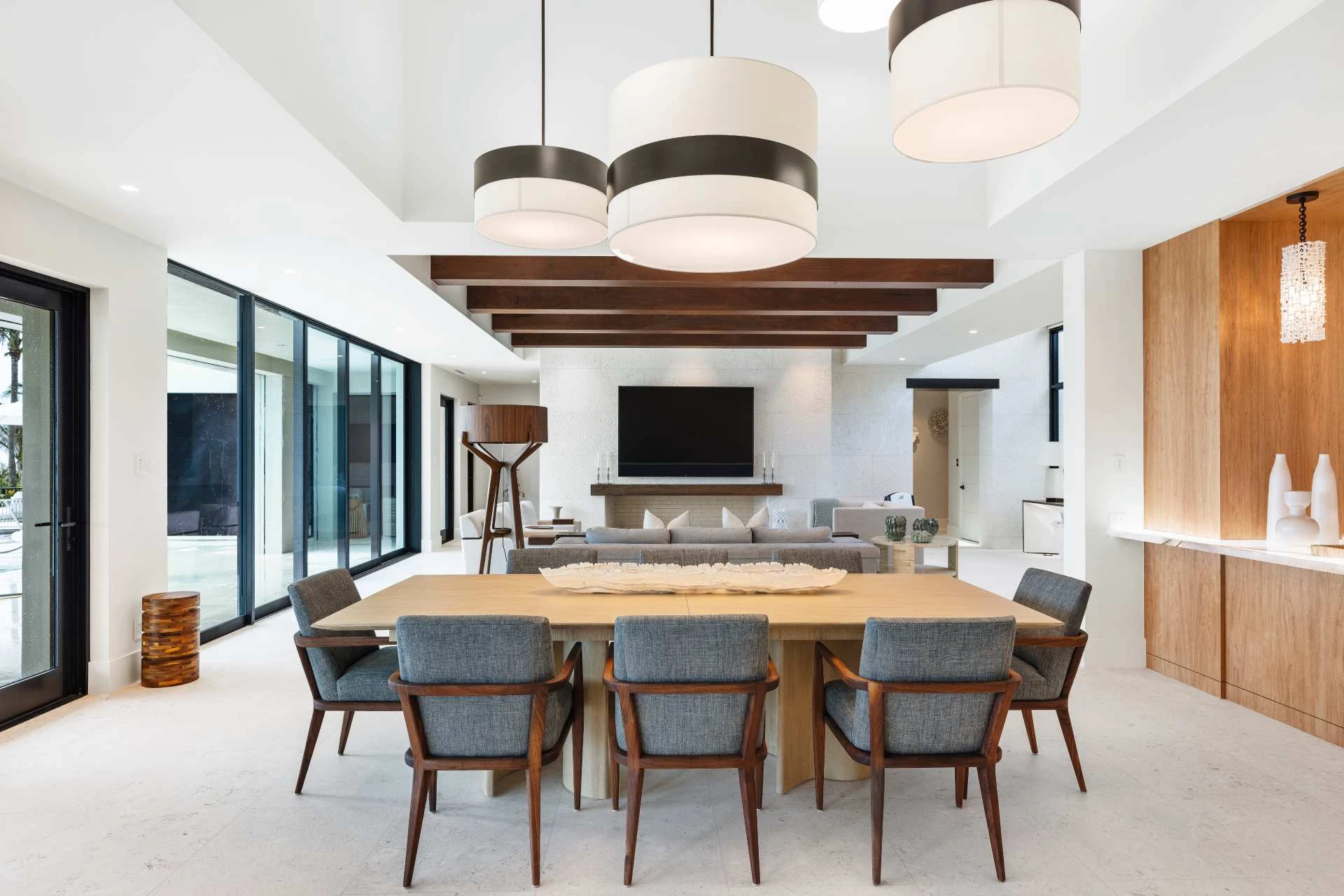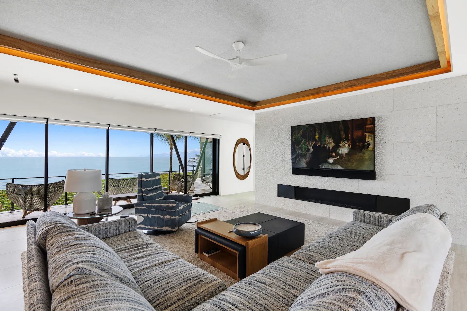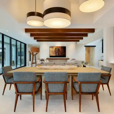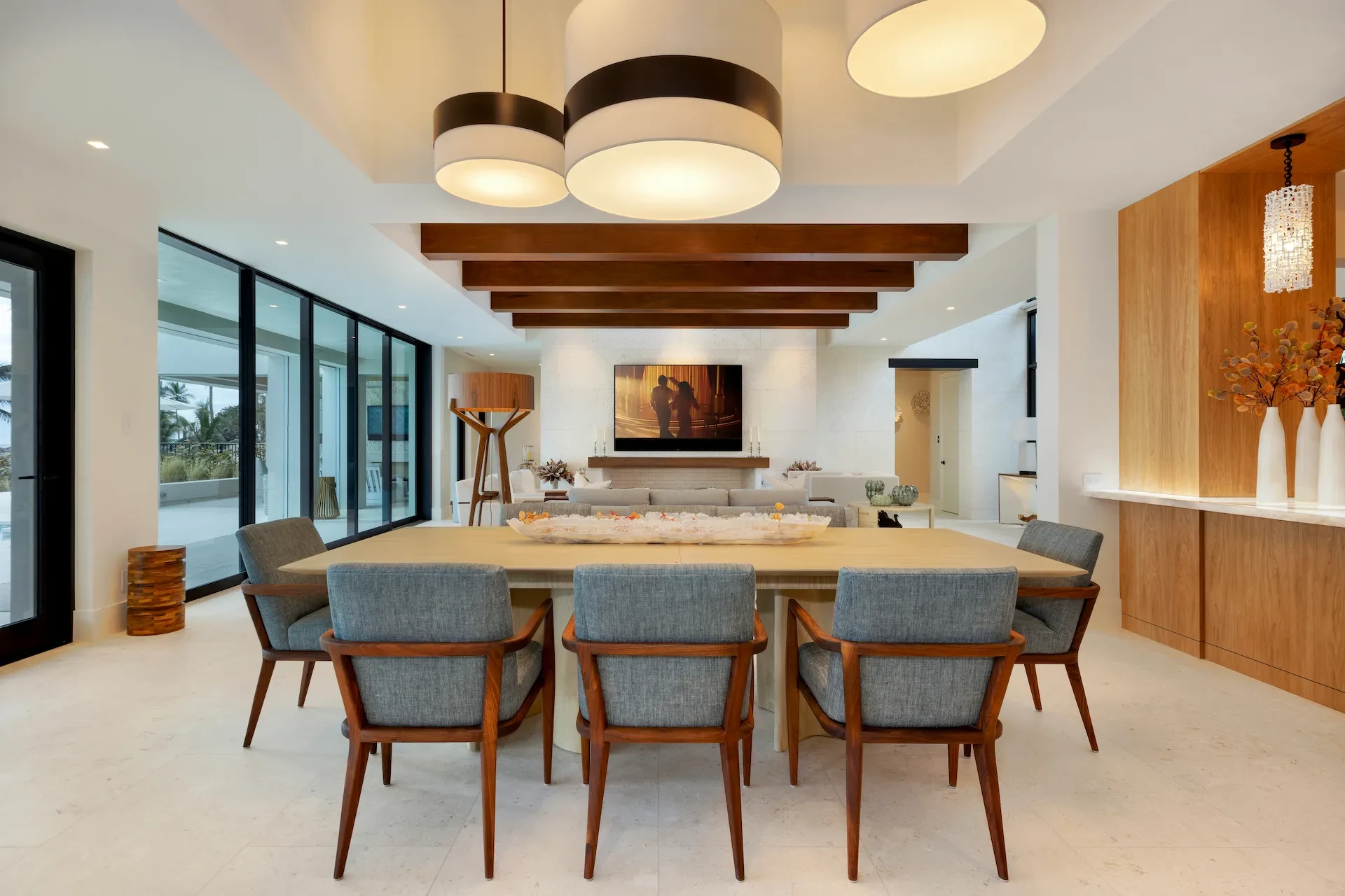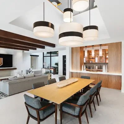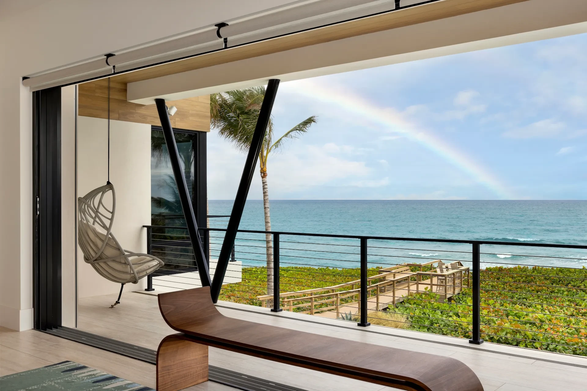 Nestled along the Florida coast, this oceanfront home stands as a testament to the collaborative spirit of all who contributed to its creation, each bringing unique talents to weave together a tapestry of beauty and functionality. As the final touches were completed, the anticipation grew, with the owners' wedding just days away. The pressure mounted to ensure every detail was perfect, including carefully curated details, like the intricately woven walnut ceilings. The stakes were high, but the reward was immeasurable: a breathtaking setting for the beginning of our clients’ “happily ever after!”
