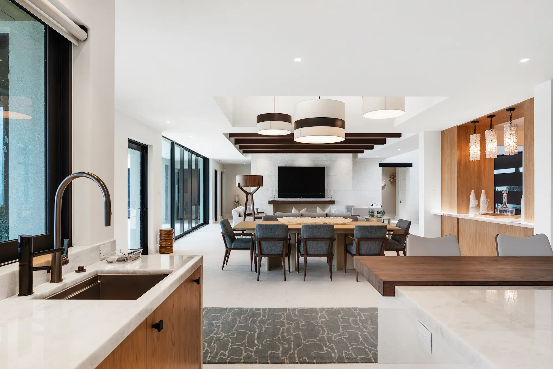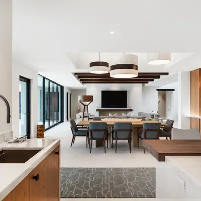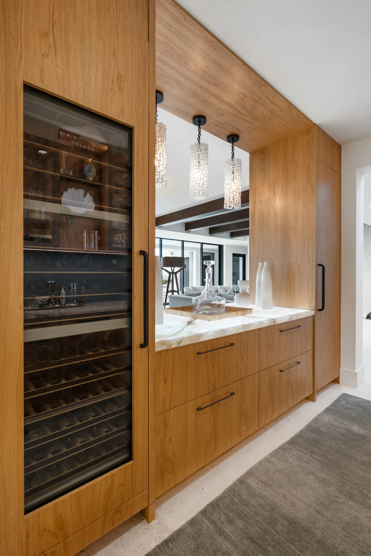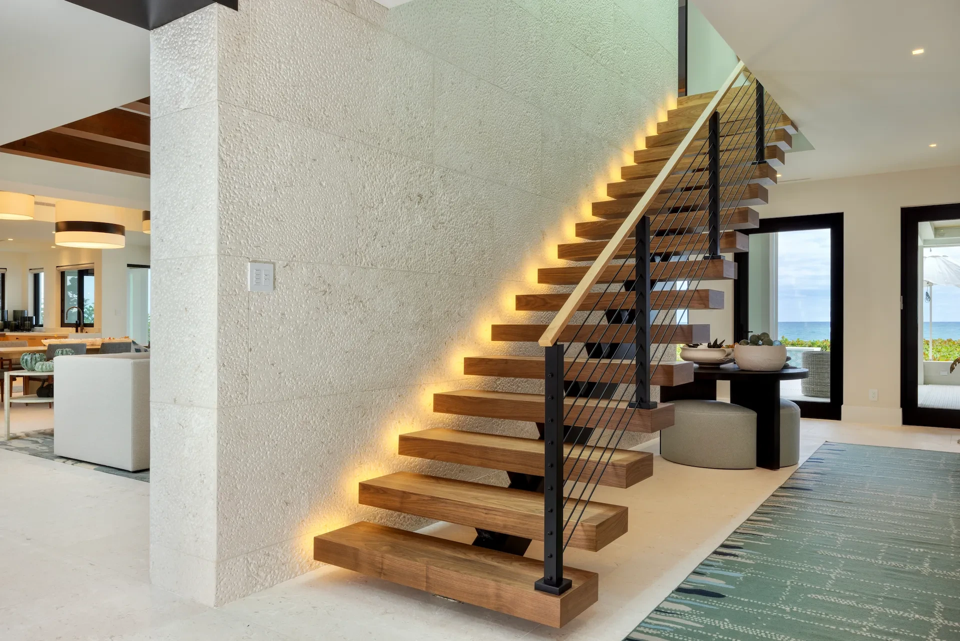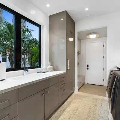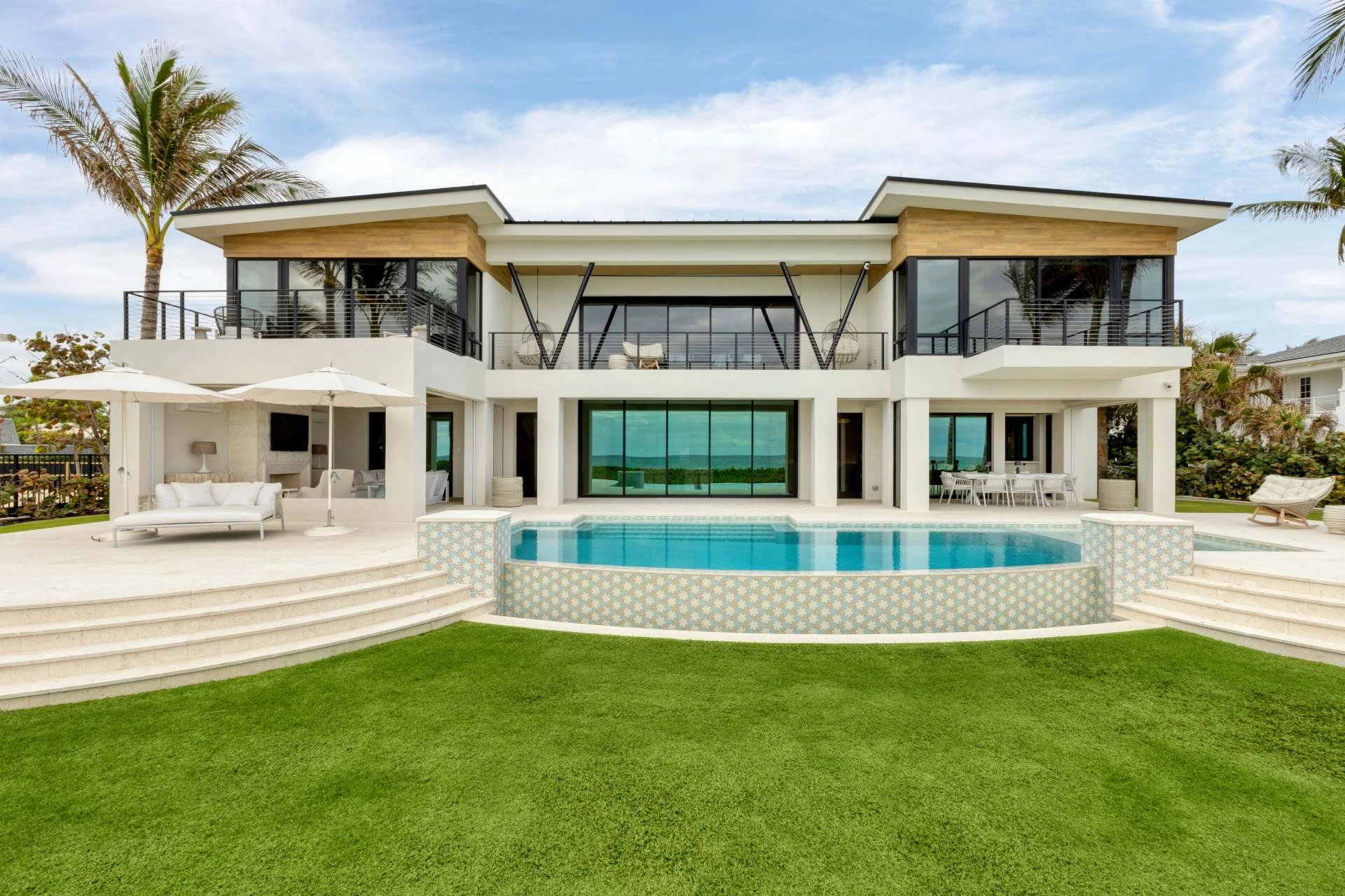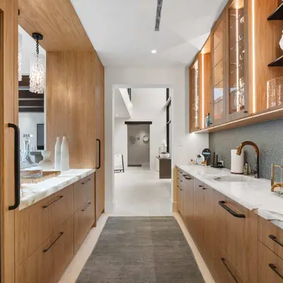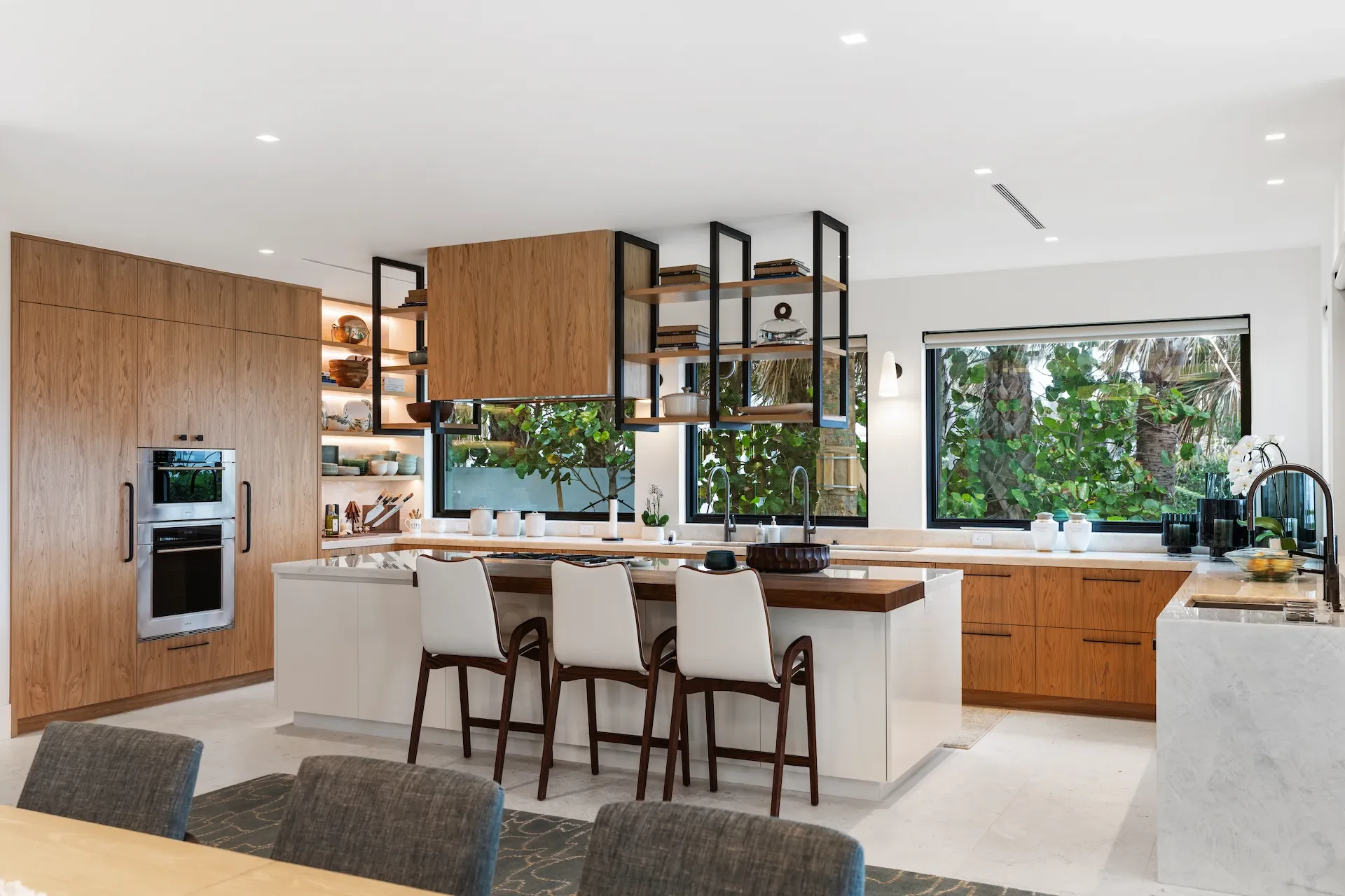 Nestled along the Florida coast, this oceanfront home stands as a testament to the collaborative spirit of all who contributed to its creation, each bringing unique talents to weave together a tapestry of beauty and functionality. As the final touches were completed, the anticipation grew, with the owners' wedding just days away. The pressure mounted to ensure every detail was perfect, including carefully curated details, like the intricately woven walnut ceilings. The stakes were high, but the reward was immeasurable: a breathtaking setting for the beginning of our clients’ “happily ever after!”