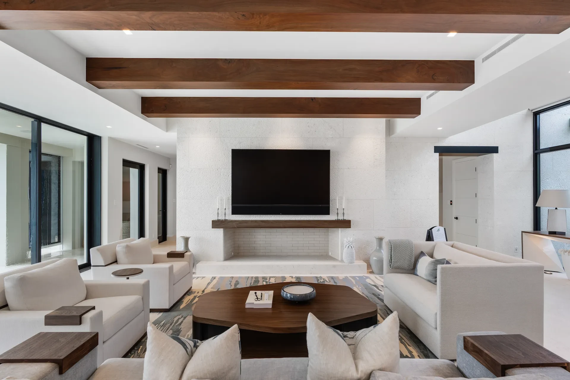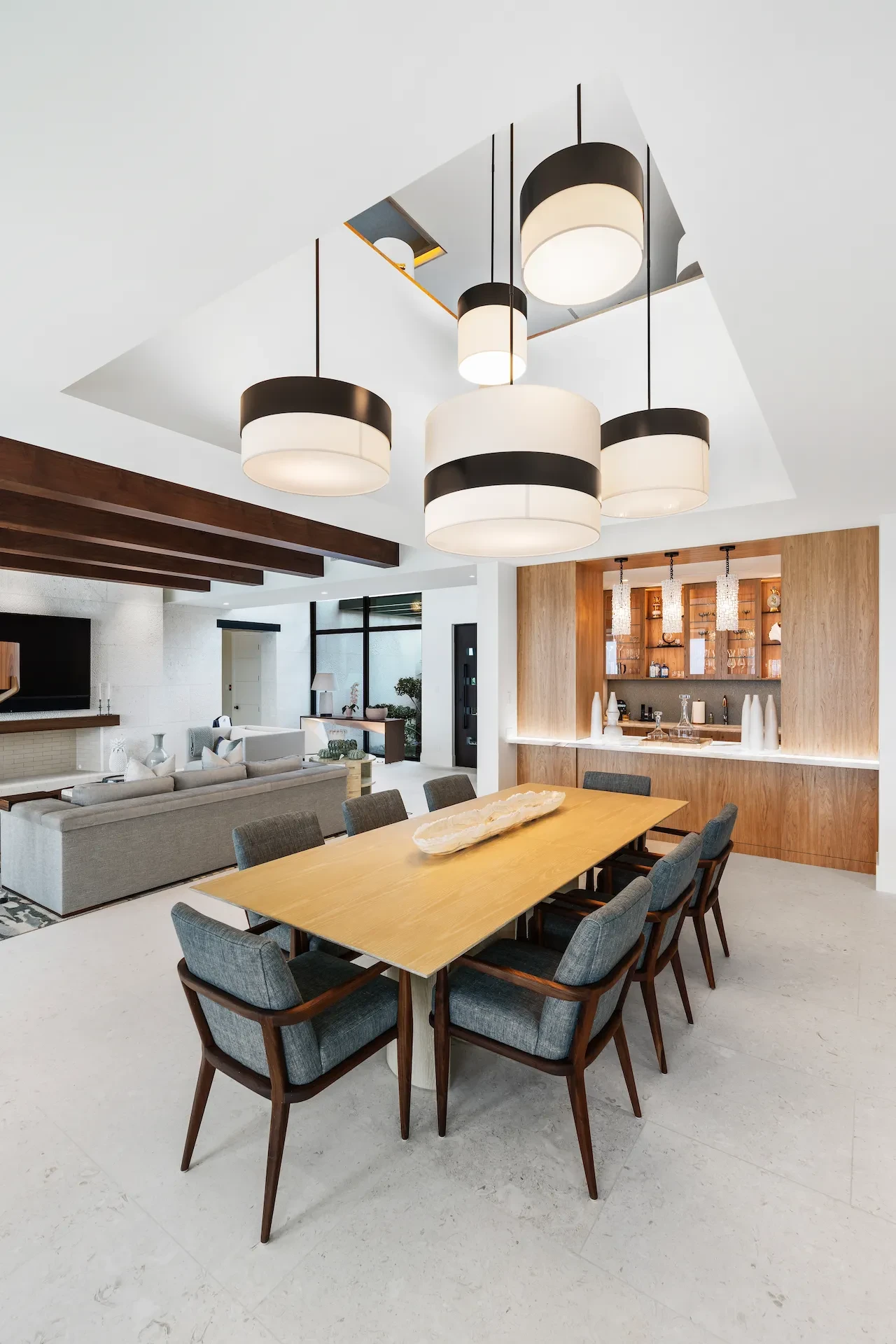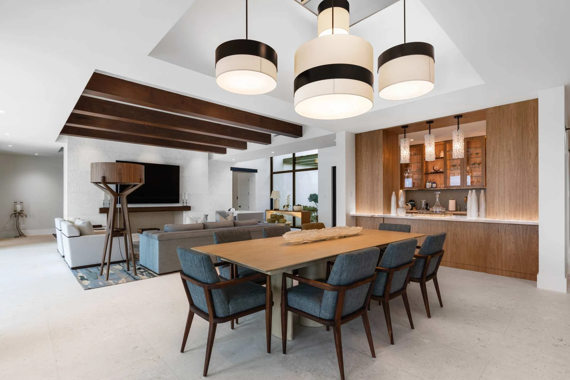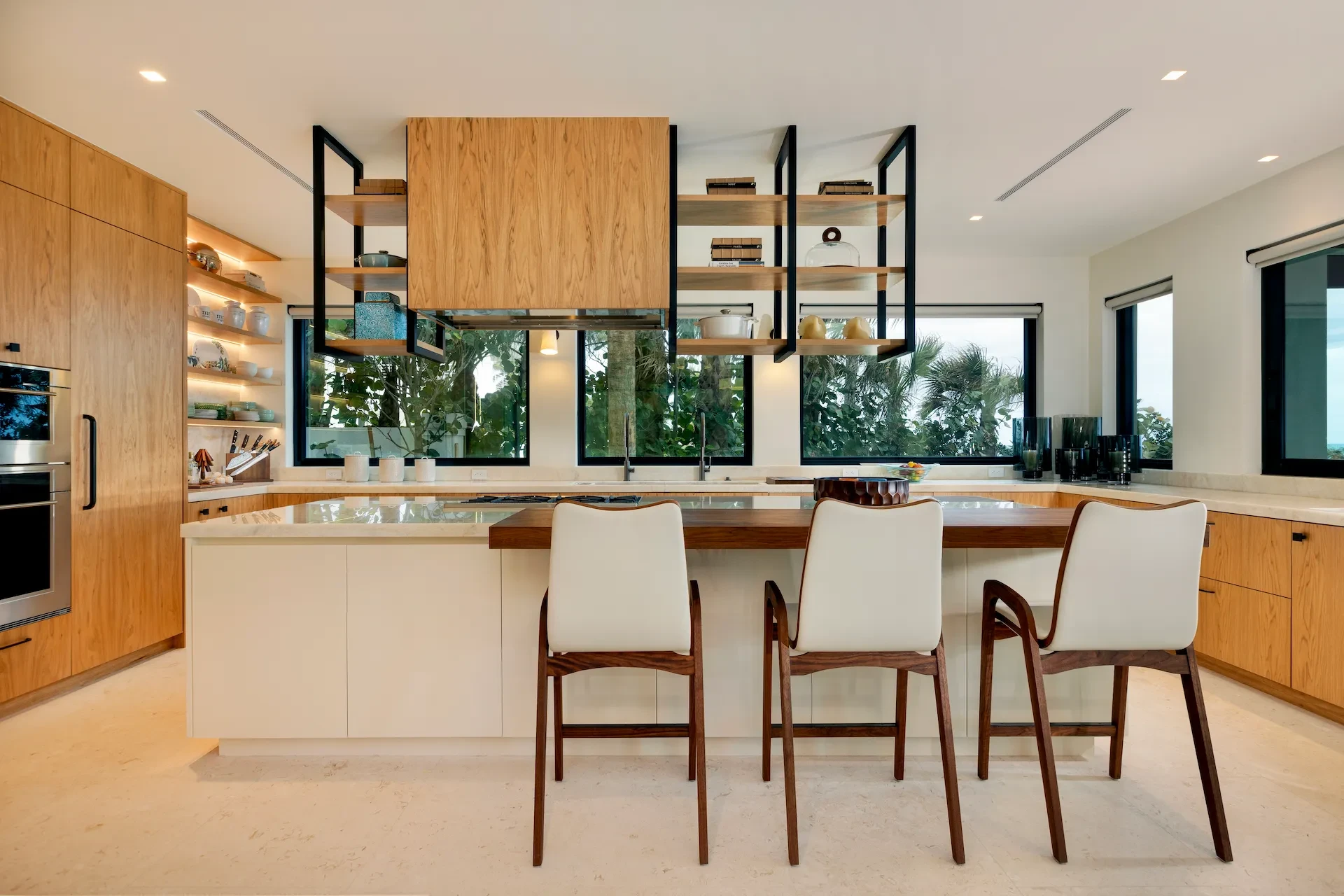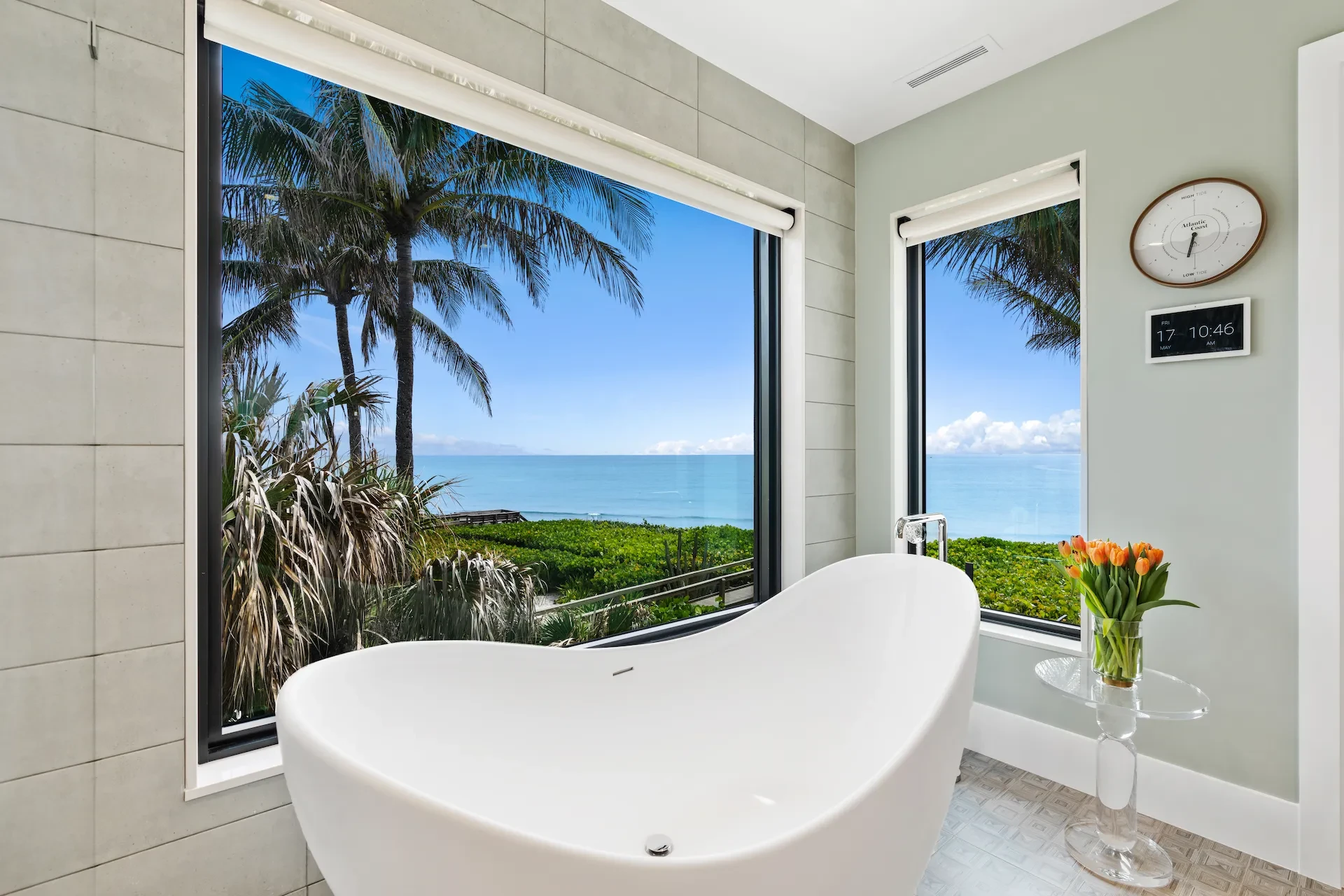 Nestled along the Florida coast, this oceanfront home stands as a testament to the collaborative spirit of all who contributed to its creation, each bringing unique talents to weave together a tapestry of beauty and functionality. As the final touches were completed, the anticipation grew, with the owners' wedding just days away. The pressure mounted to ensure every detail was perfect, including carefully curated details, like the intricately woven walnut ceilings. The stakes were high, but the reward was immeasurable: a breathtaking setting for the beginning of our clients’ “happily ever after!”