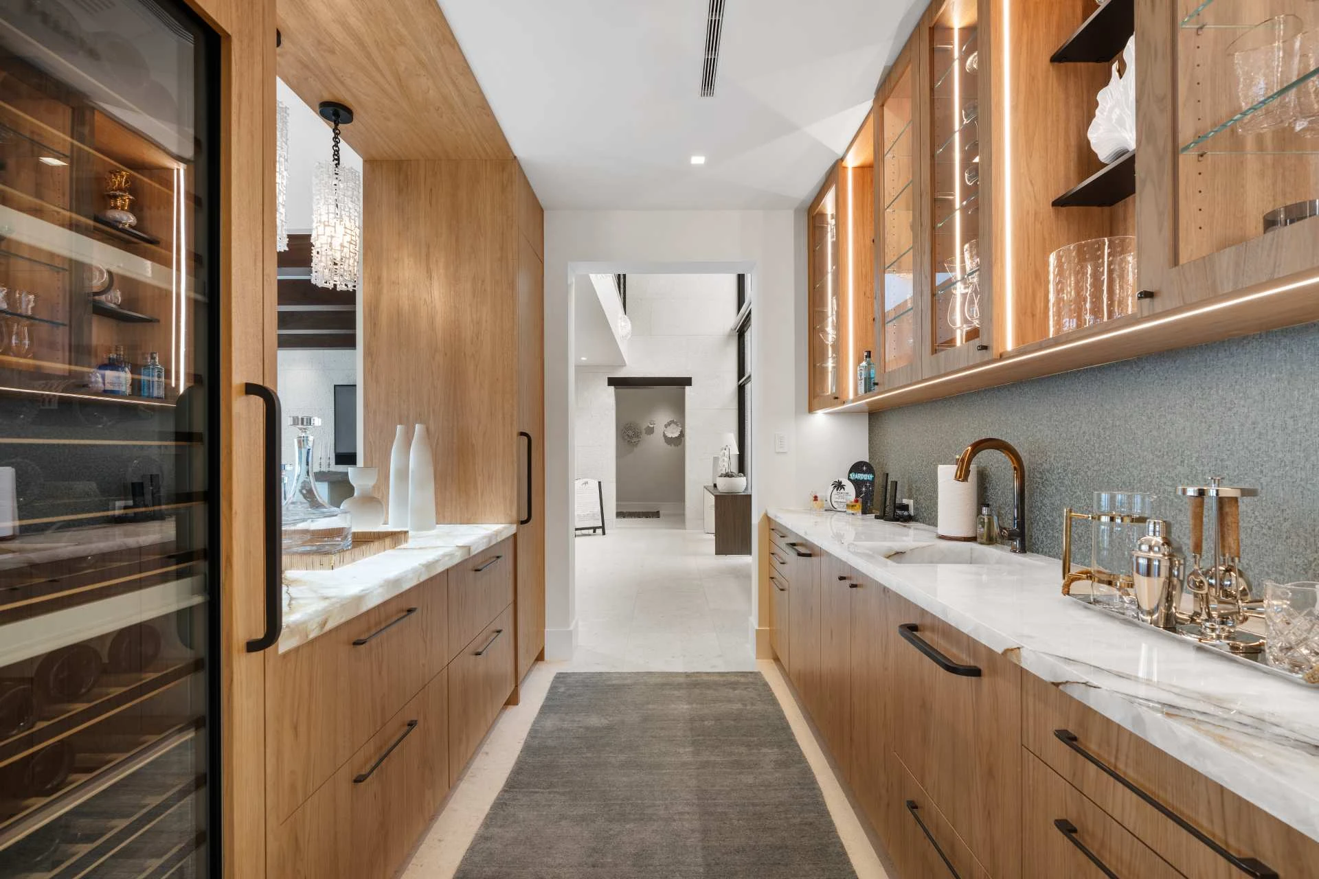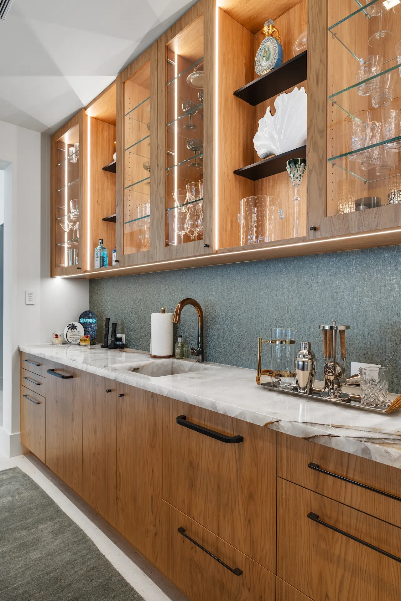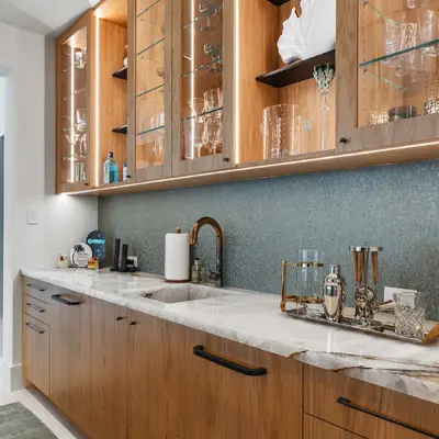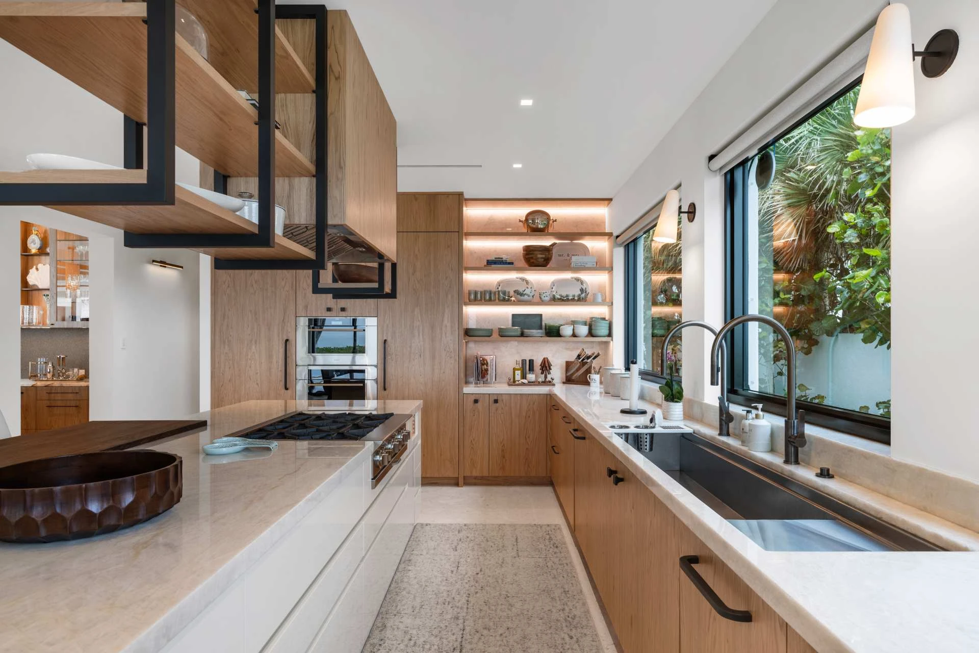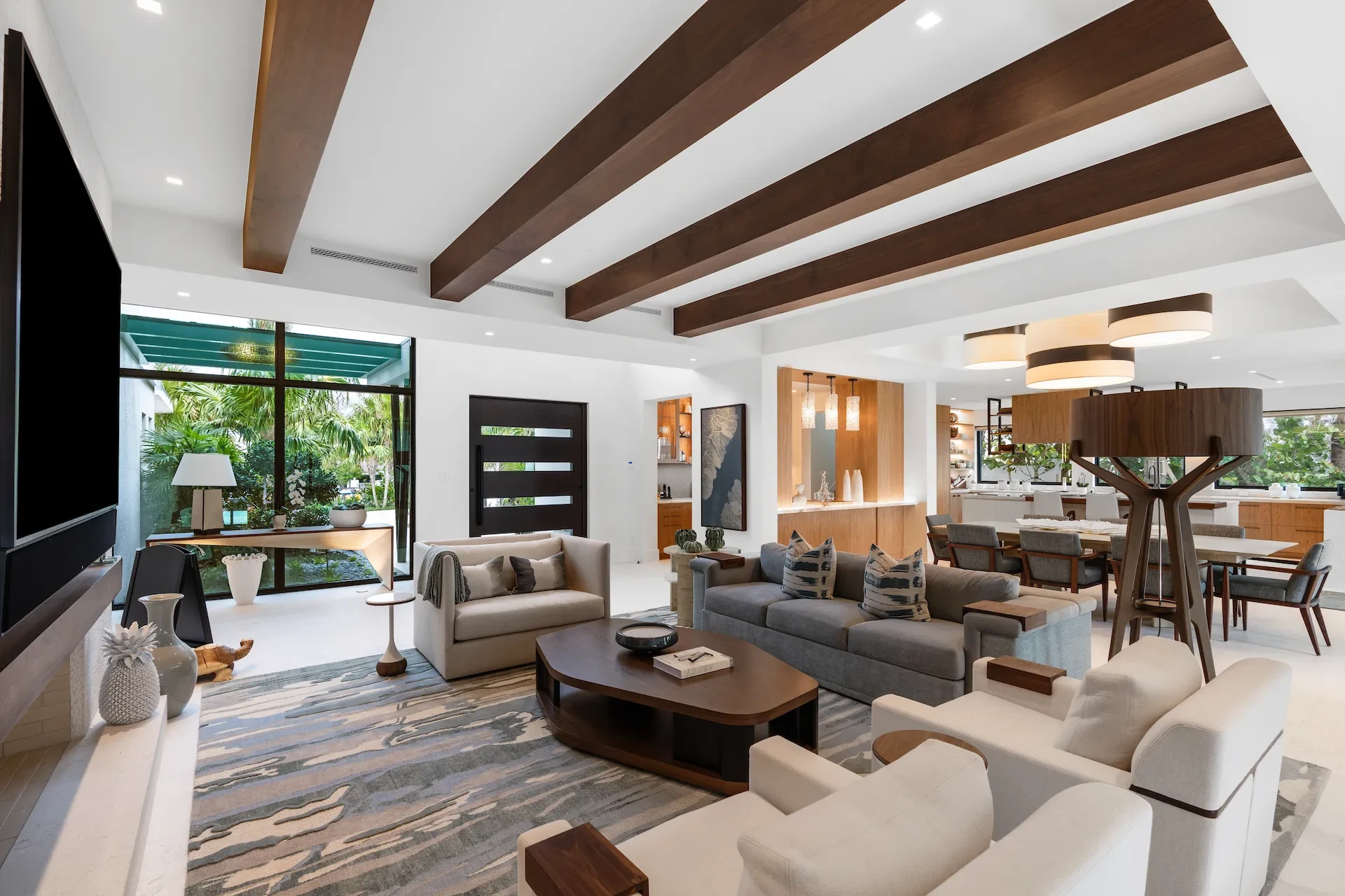 Nestled along the Florida coast, this oceanfront home stands as a testament to the collaborative spirit of all who contributed to its creation, each bringing unique talents to weave together a tapestry of beauty and functionality. As the final touches were completed, the anticipation grew, with the owners' wedding just days away. The pressure mounted to ensure every detail was perfect, including carefully curated details, like the intricately woven walnut ceilings. The stakes were high, but the reward was immeasurable: a breathtaking setting for the beginning of our clients’ “happily ever after!”