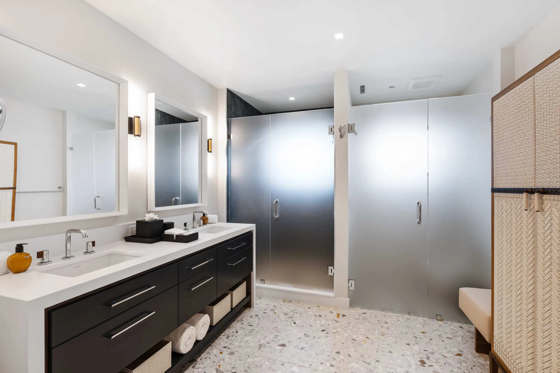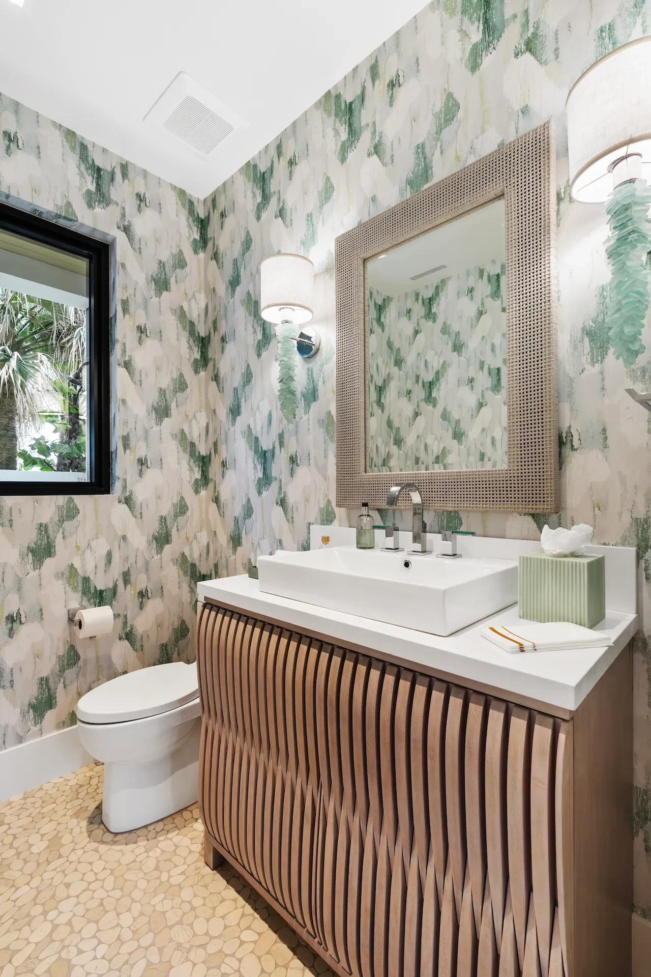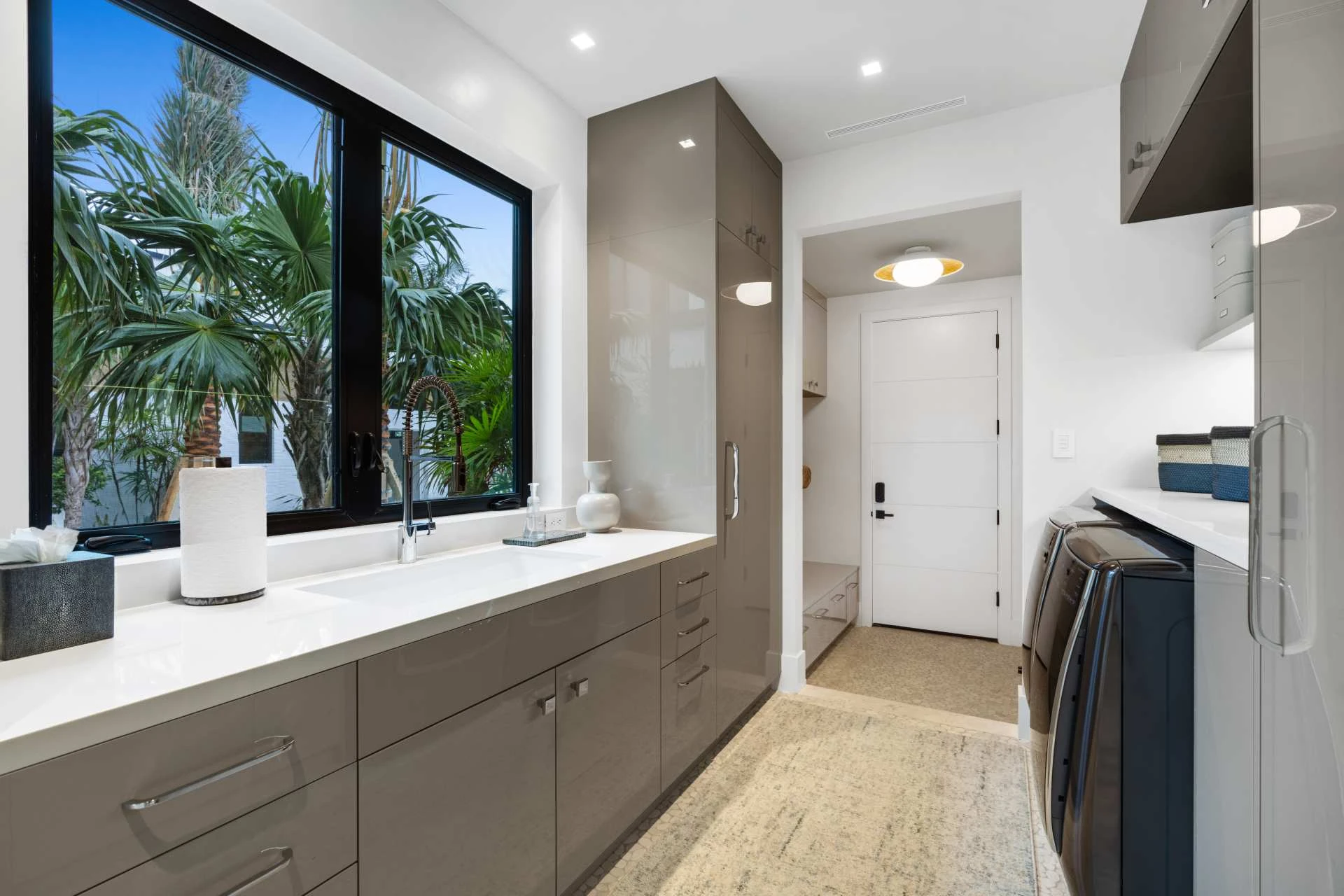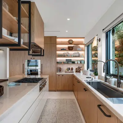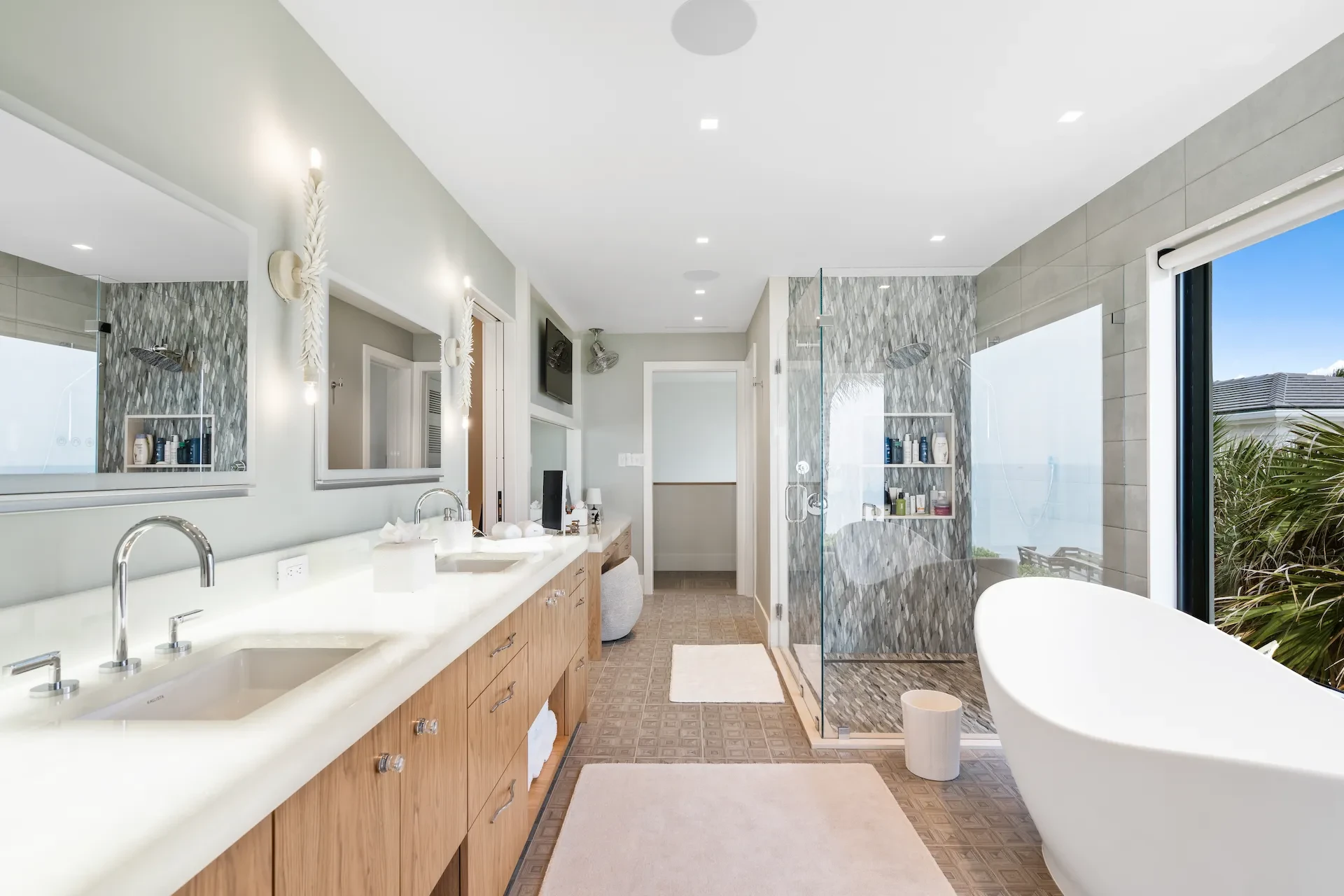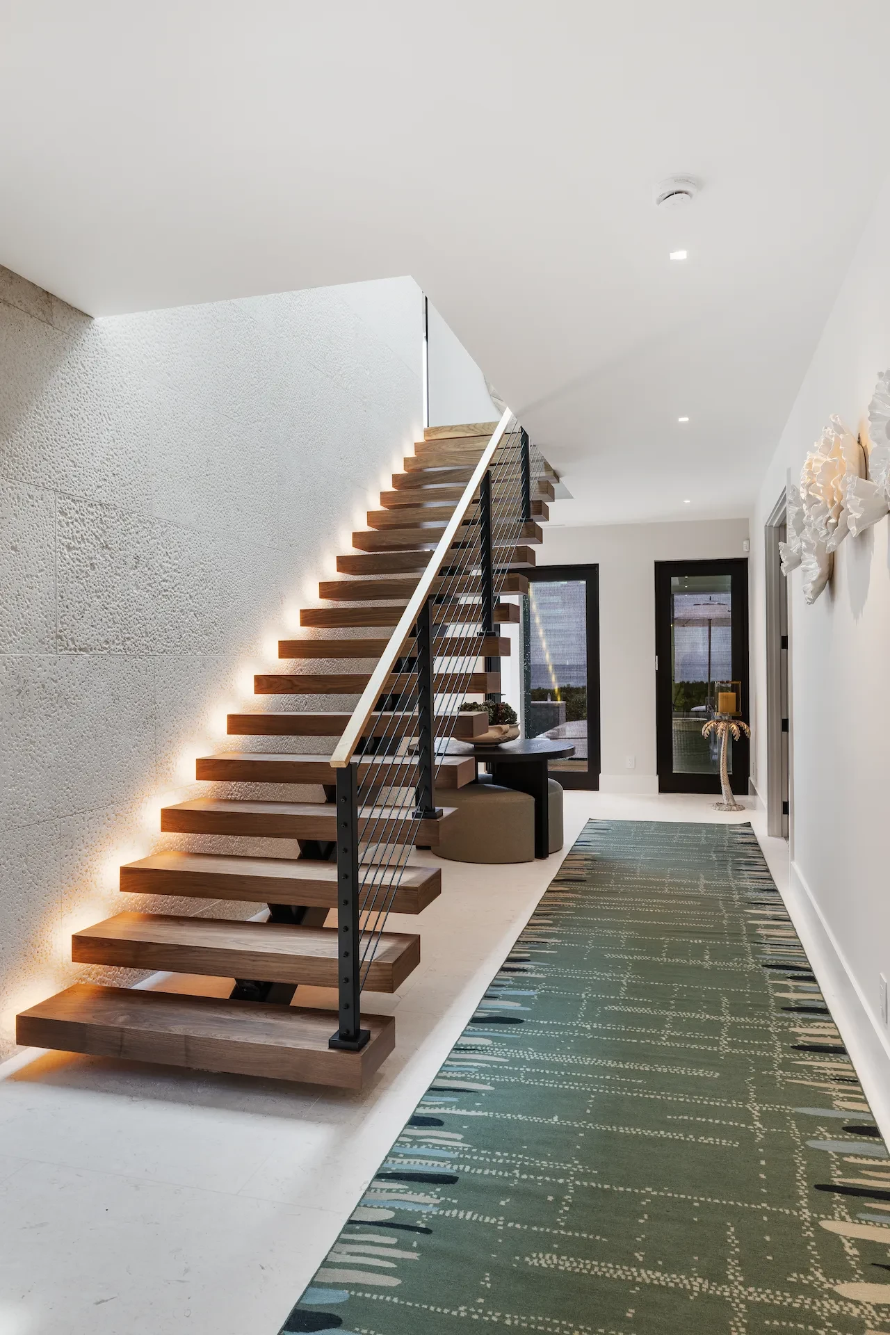 Nestled along the Florida coast, this oceanfront home stands as a testament to the collaborative spirit of all who contributed to its creation, each bringing unique talents to weave together a tapestry of beauty and functionality. As the final touches were completed, the anticipation grew, with the owners' wedding just days away. The pressure mounted to ensure every detail was perfect, including carefully curated details, like the intricately woven walnut ceilings. The stakes were high, but the reward was immeasurable: a breathtaking setting for the beginning of our clients’ “happily ever after!”